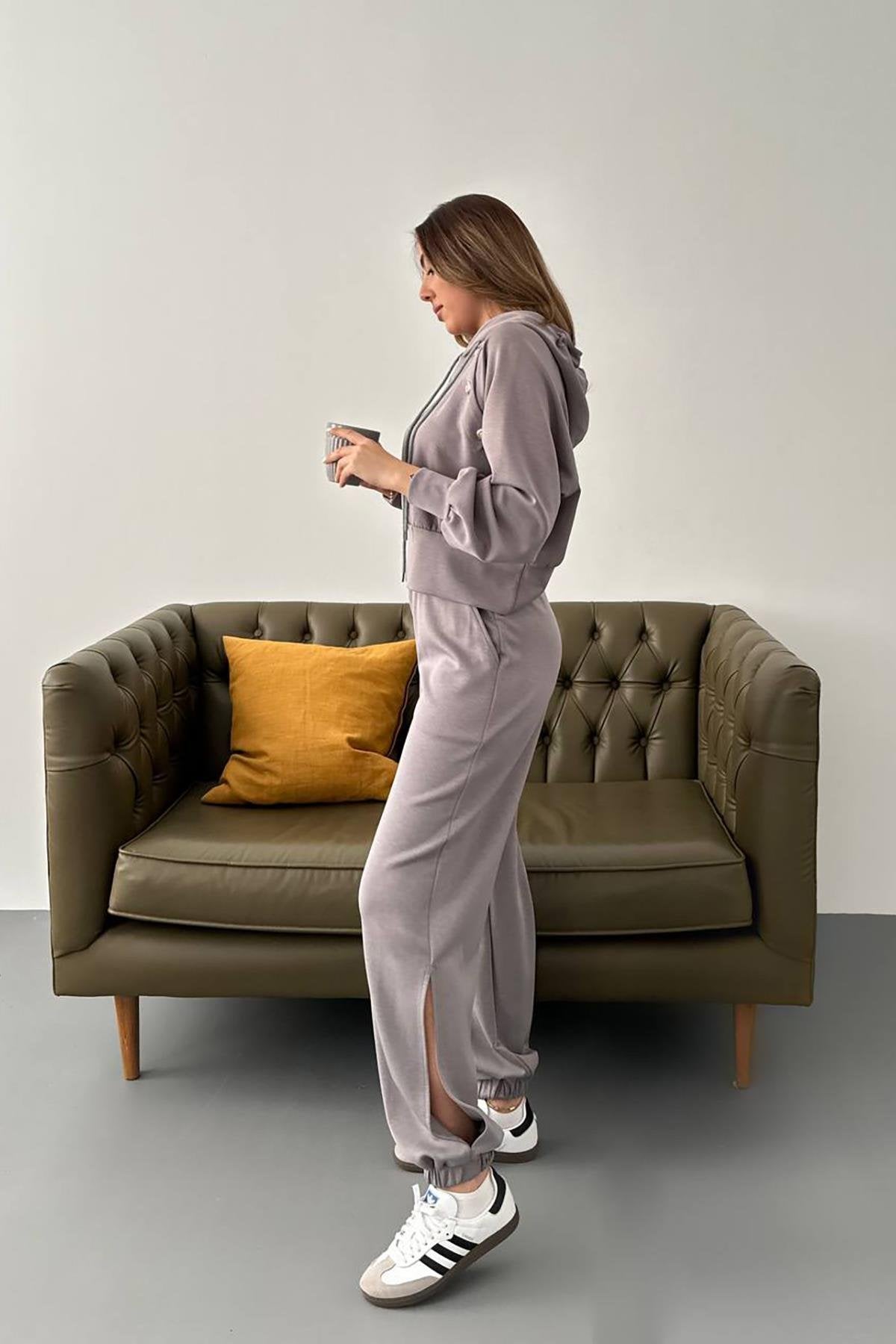 Toptan Füme Kapüşonlu Sweatshirt Ve Kargo Pantolon Takım