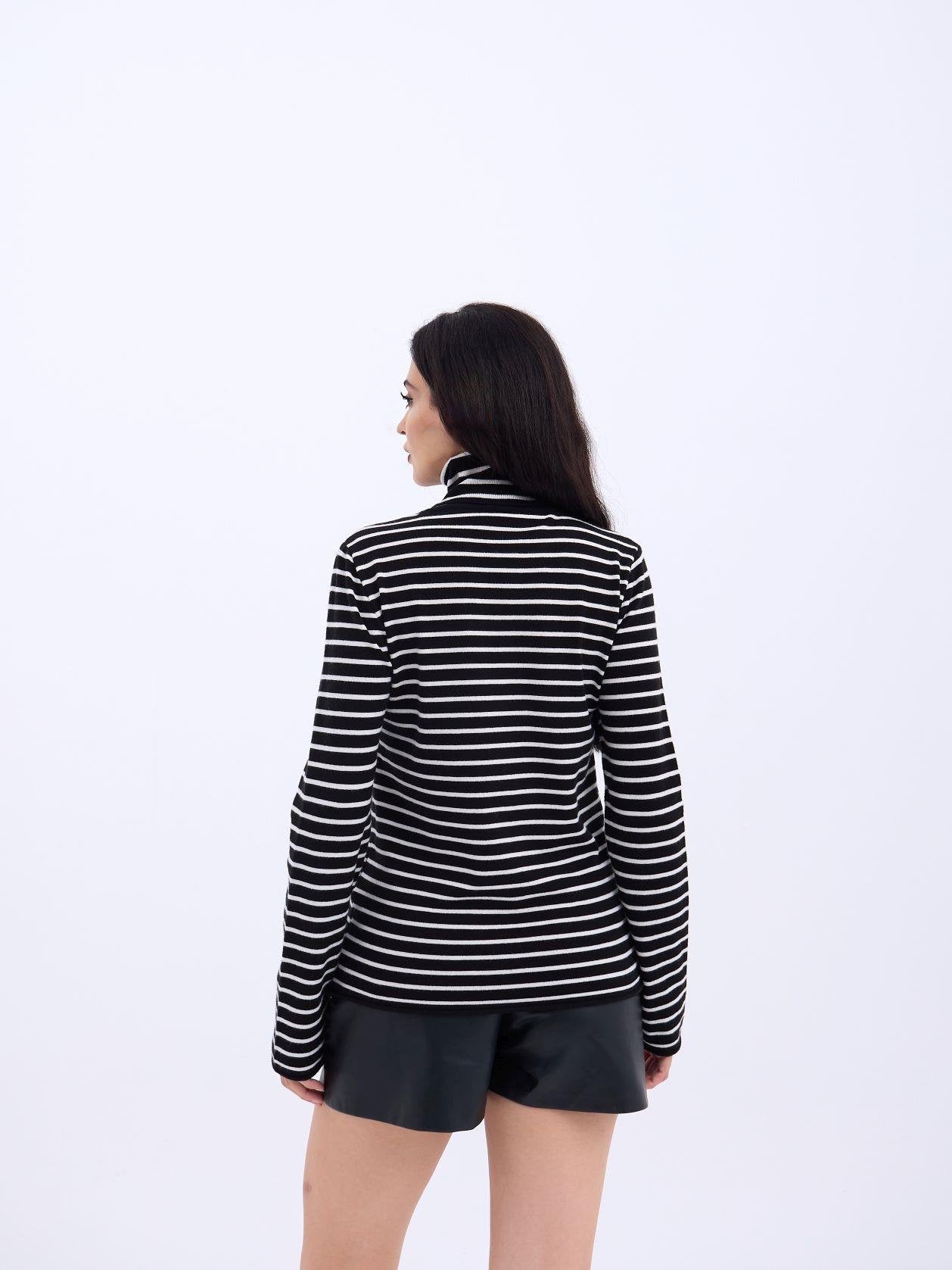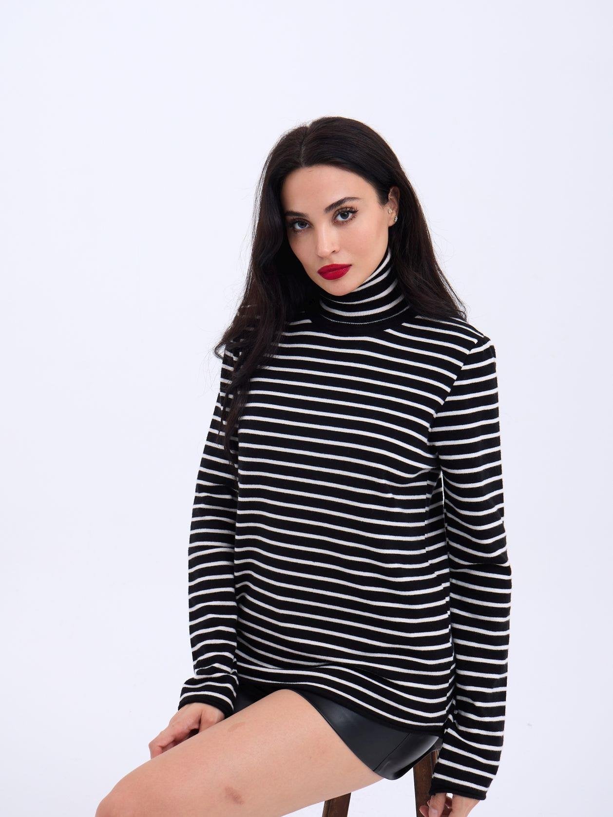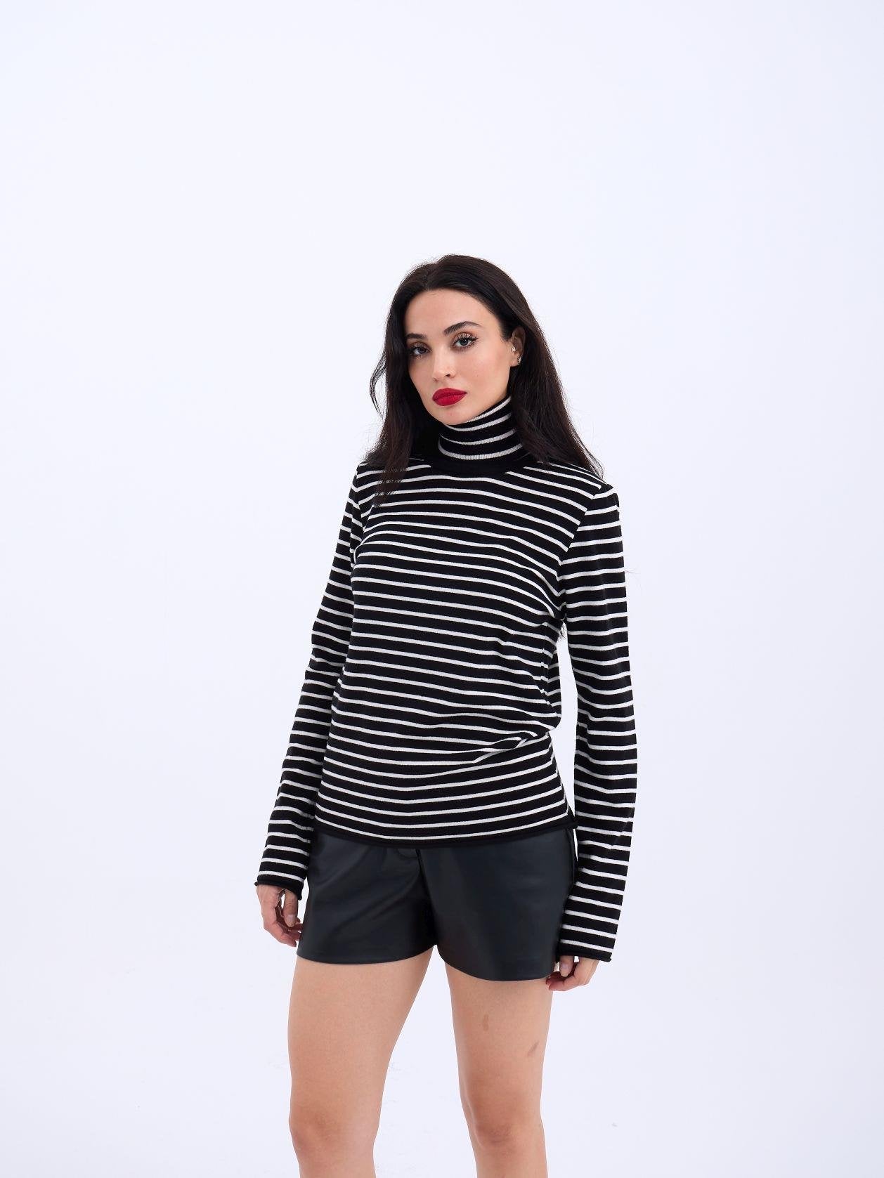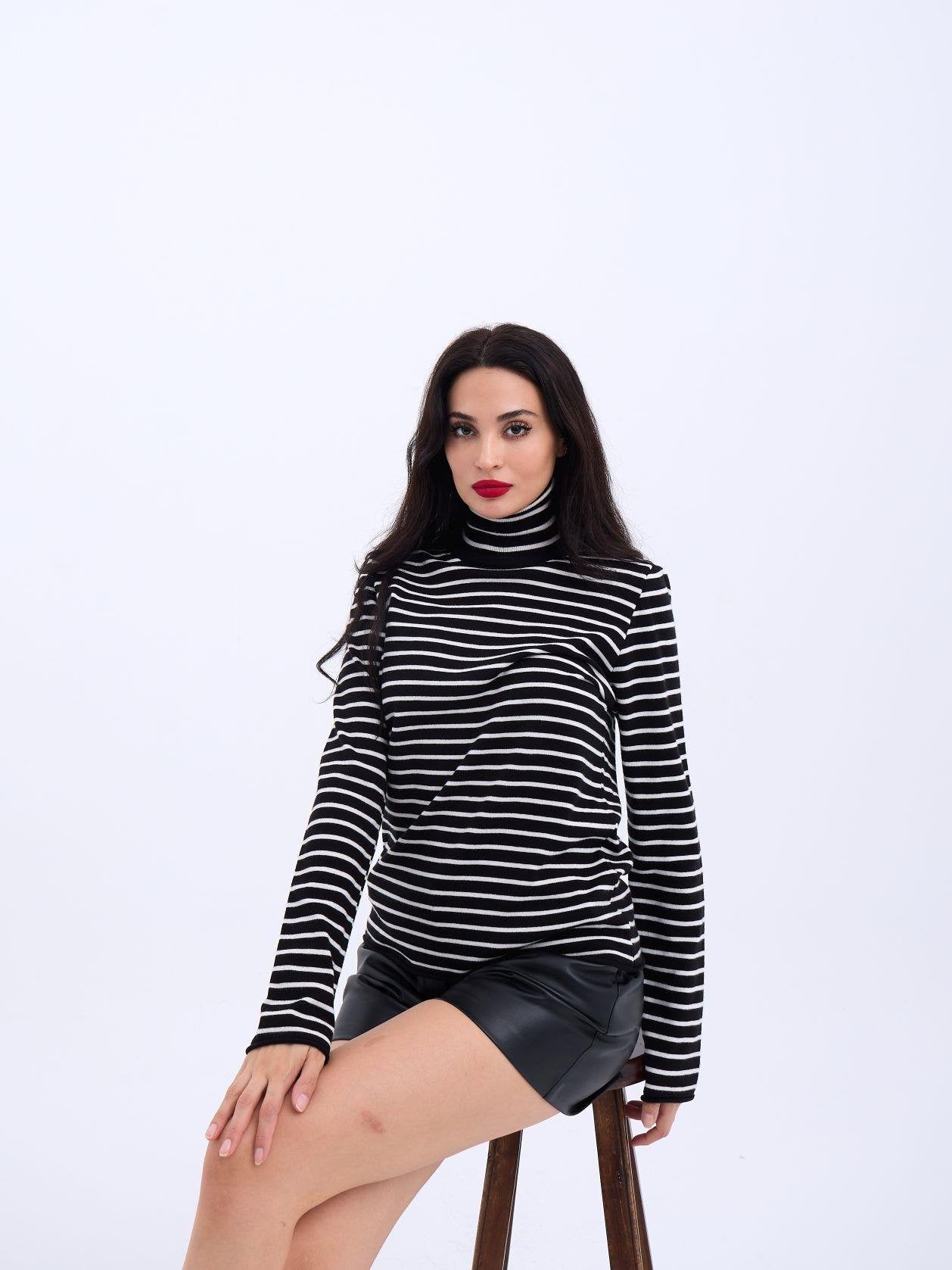 4213 STRICKWAREN GESTREIFT ROLLKRAGEN SALASH-SCHWARZ-ECRU
