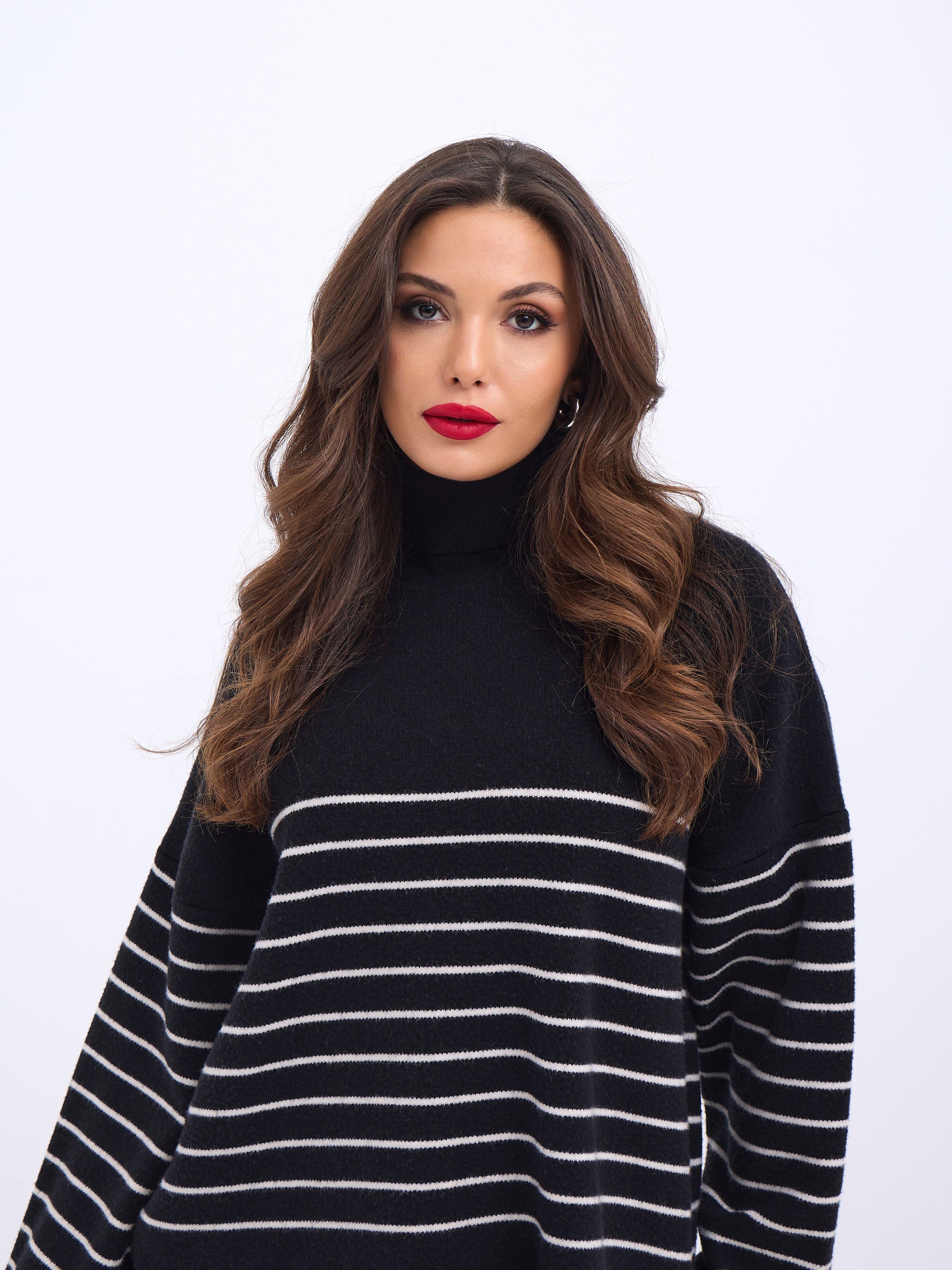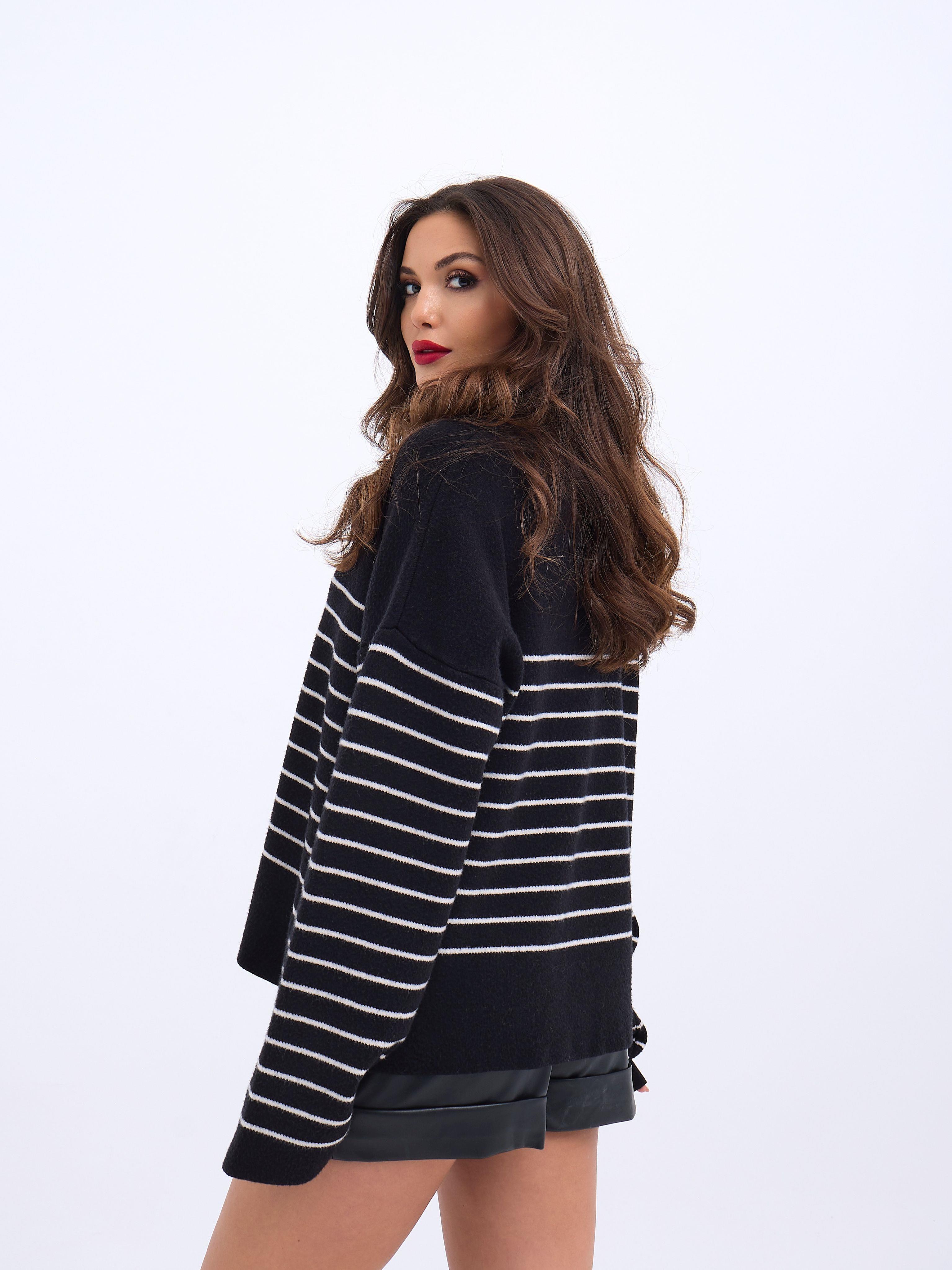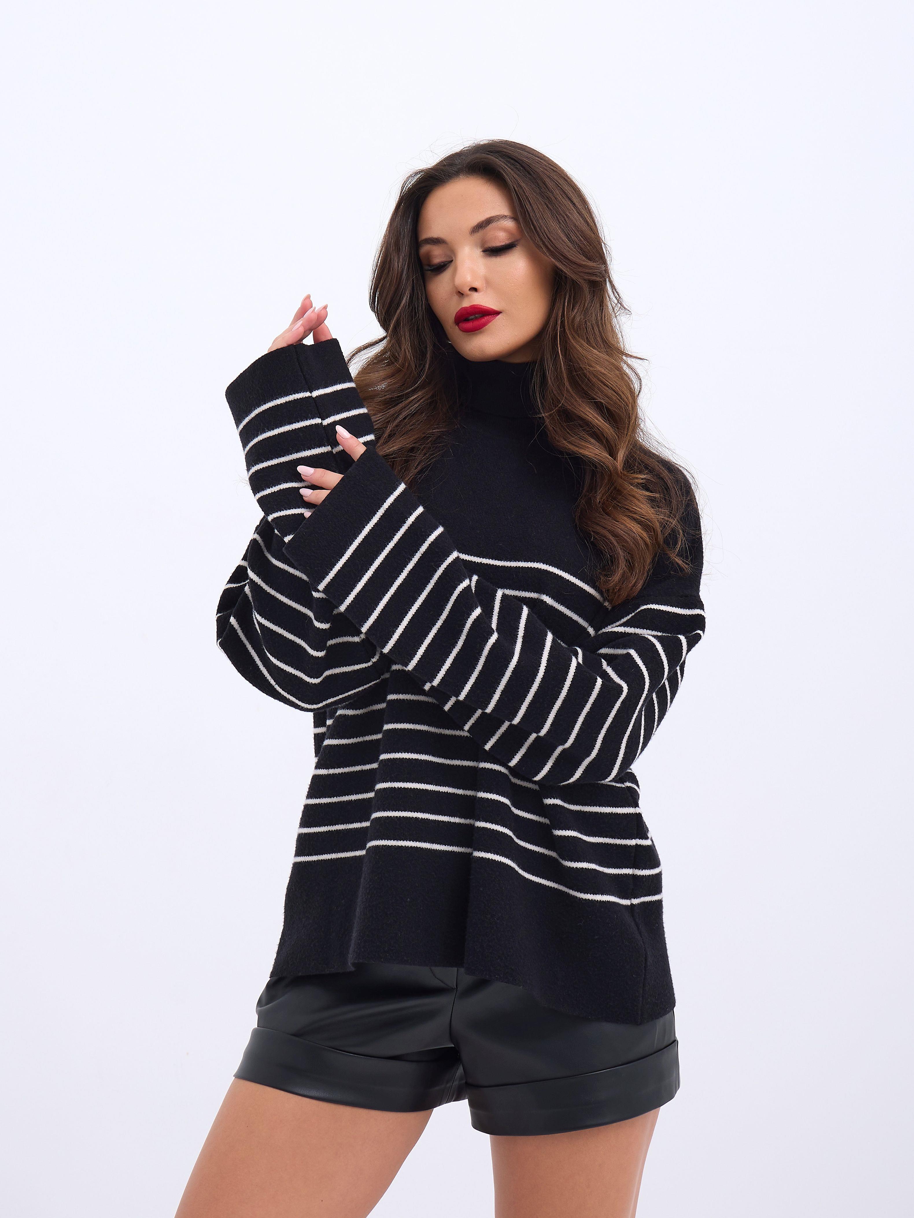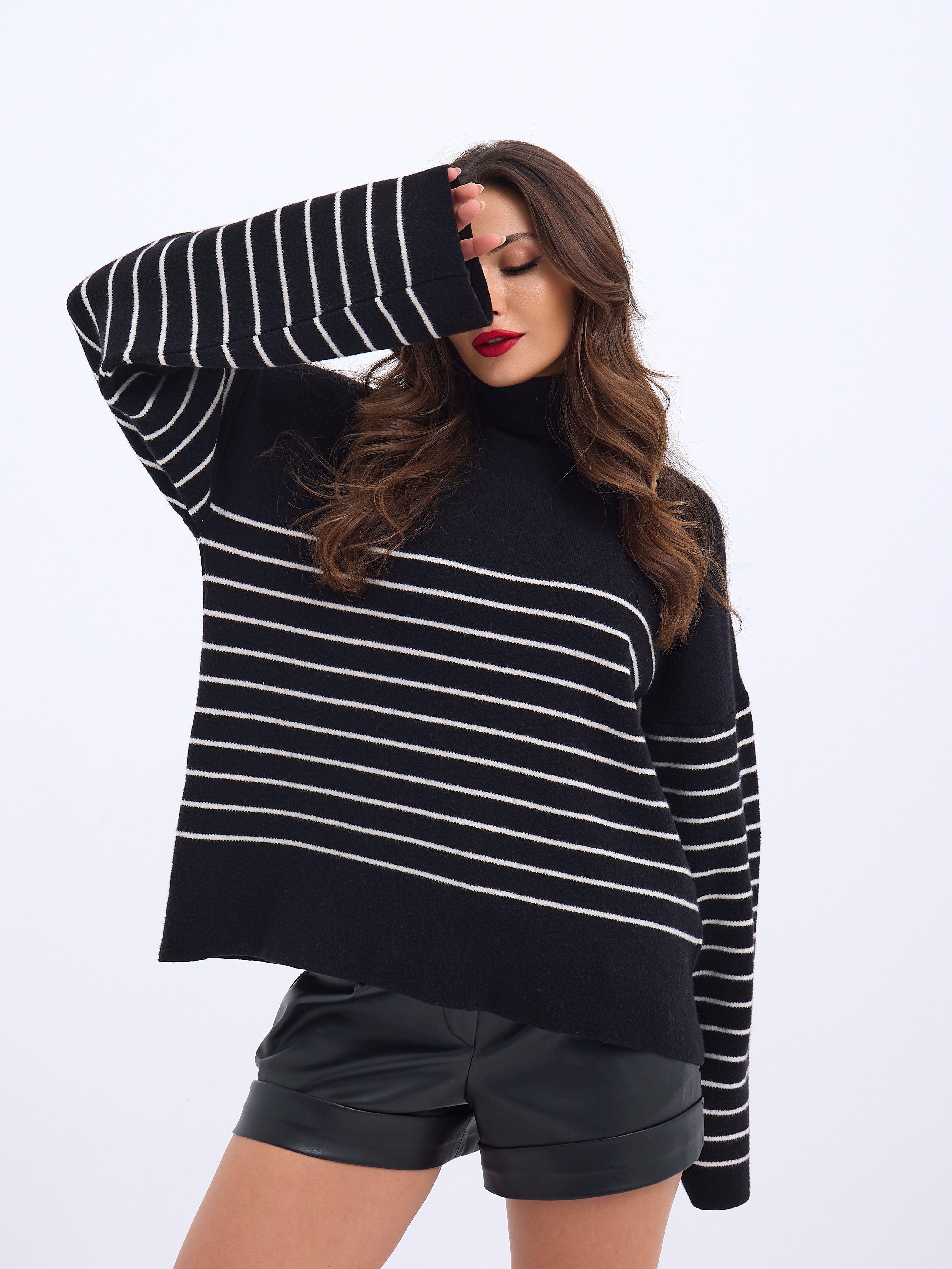 42361 STRICKWAREN ROLLKRAGEN GESTREIFT SALASH-SCHWARZ-ECRU