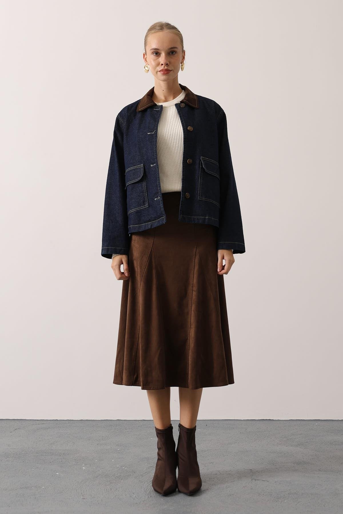 YAKASI KONTRAST DENİM OVERSİZE CEKET - Lacivert
