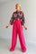 * Beli lastikli saten gömlek - Fuşya