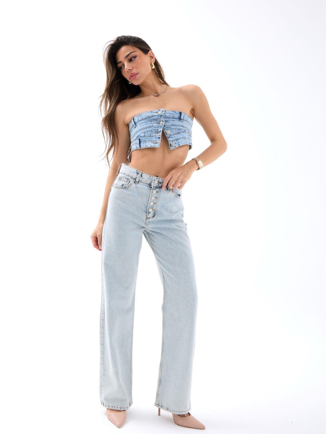 5171 DENIM BUTTONED WIDE KEG-LIGHT BLUE