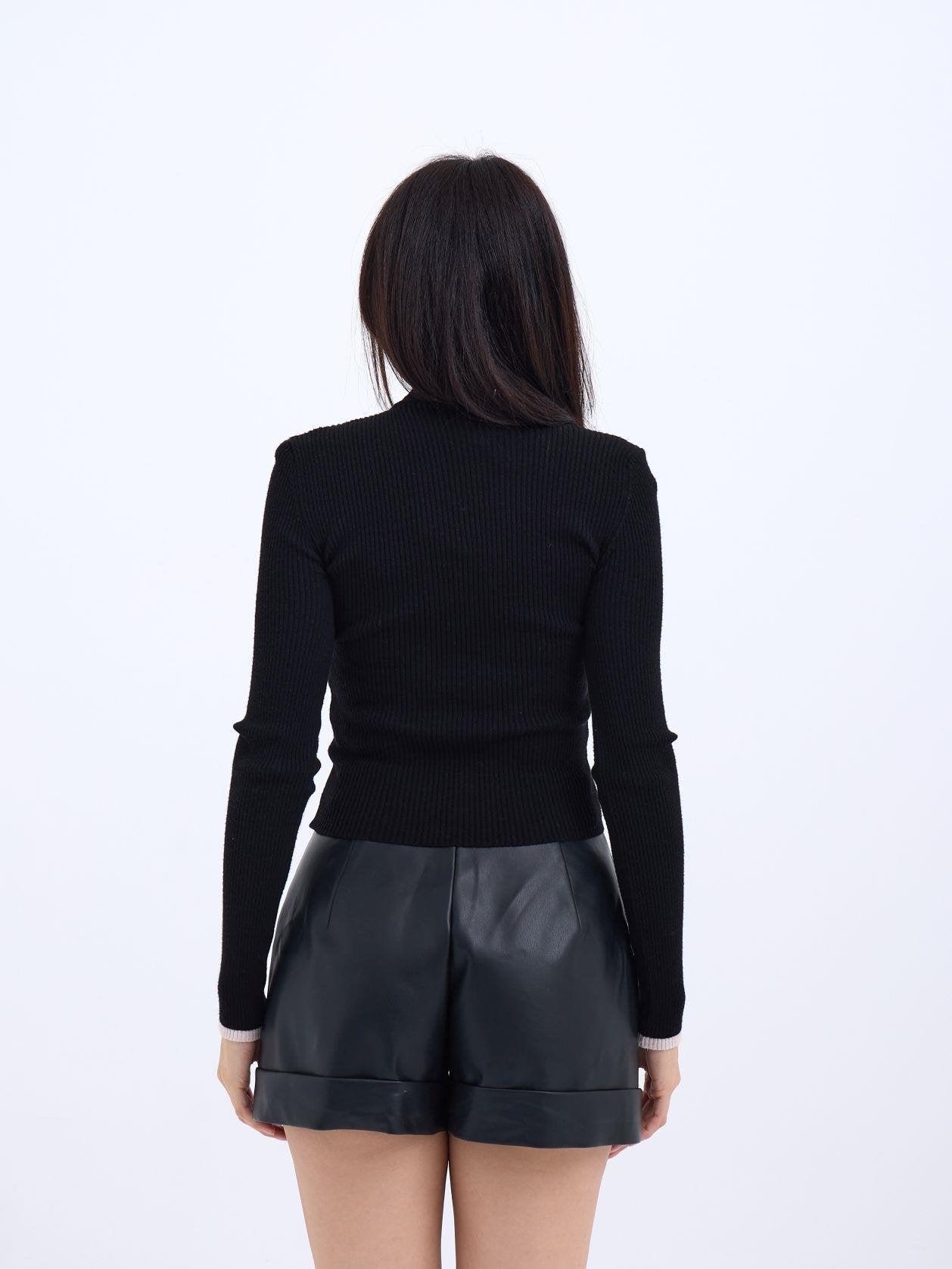 42251 STRICKWAREN FISHBEARER KORDELPULLOVER-SCHWARZ-ECRU