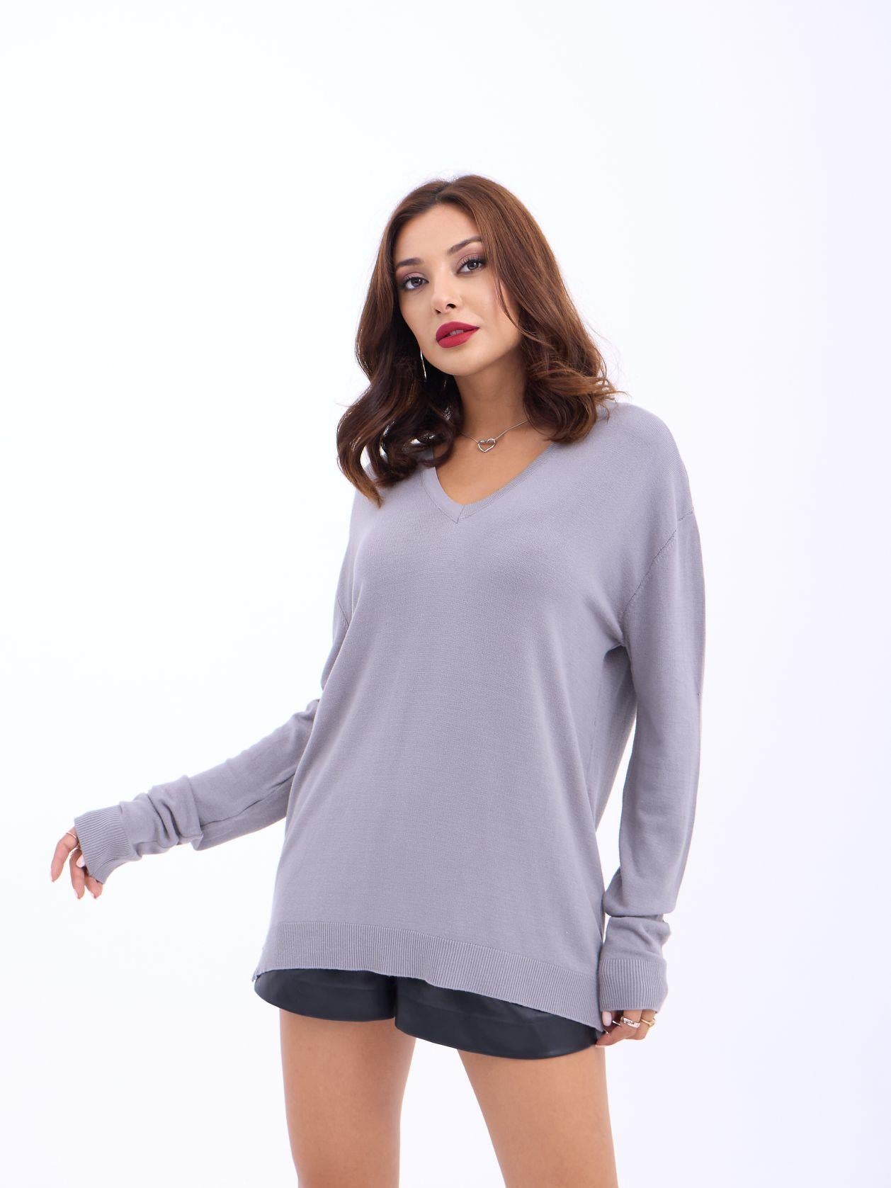 4202 STRICKWAREN V-AUSSCHNITT BASIC SALASH-GRAU