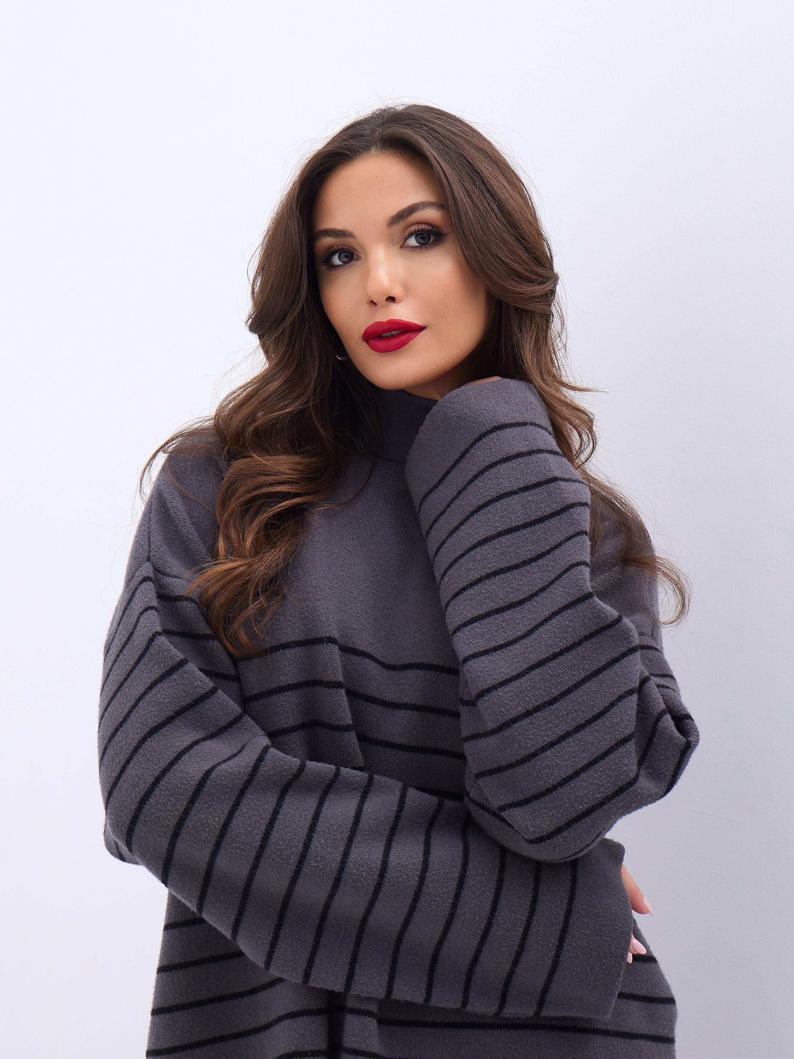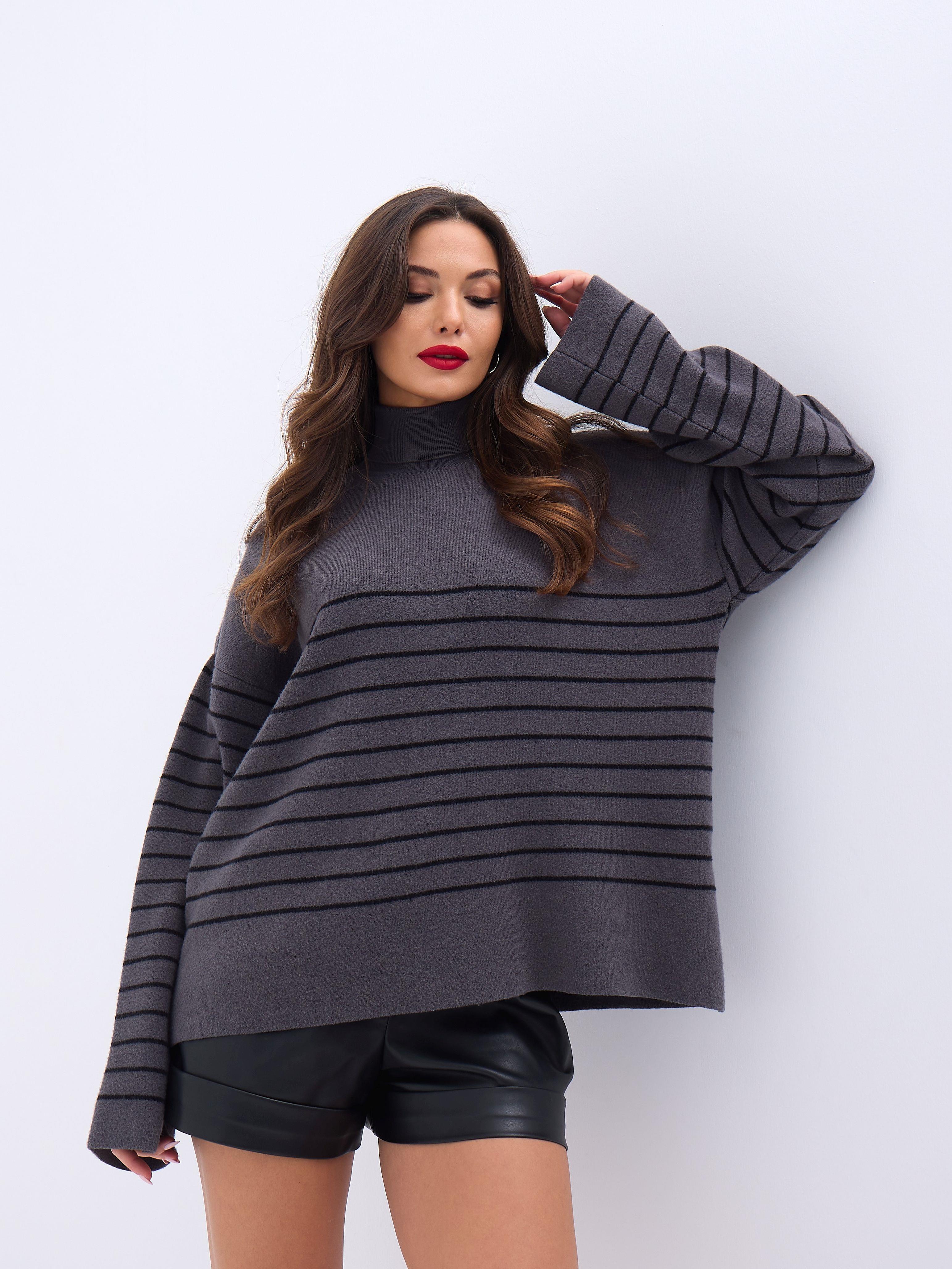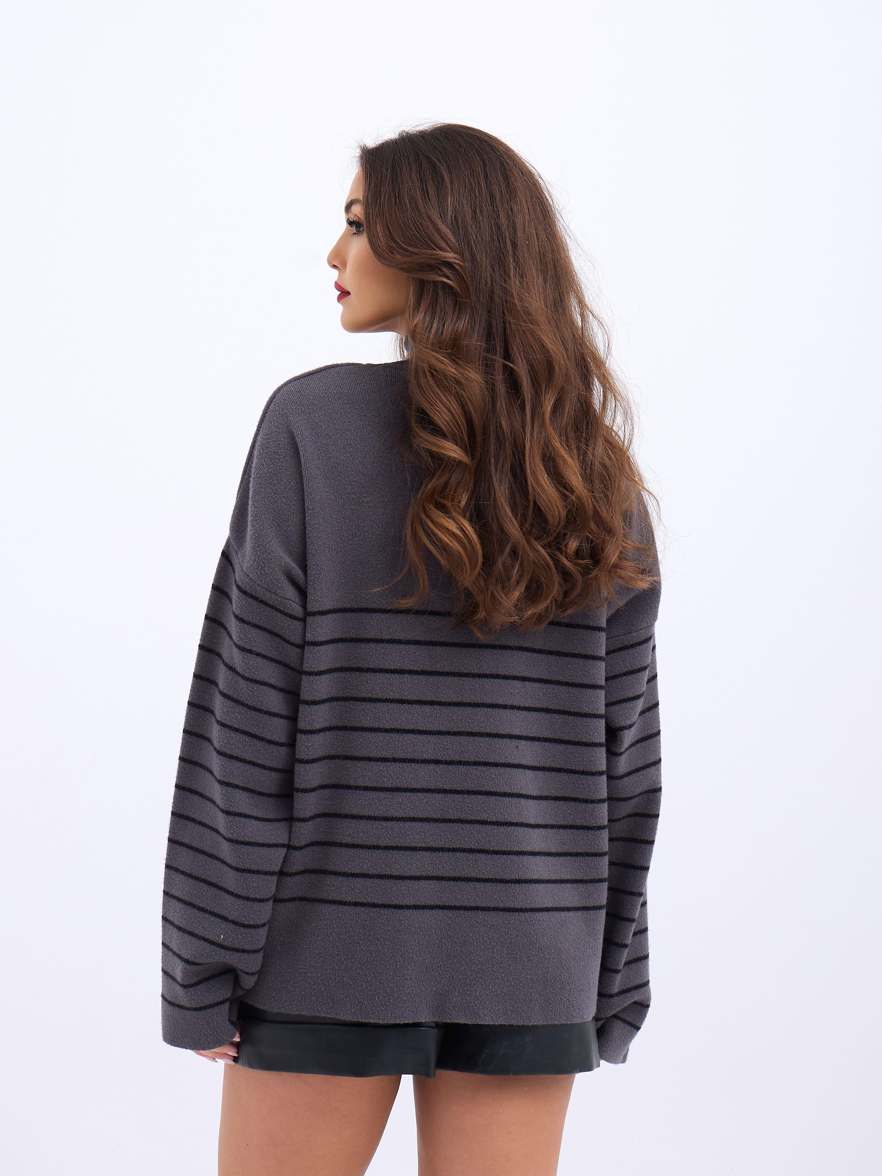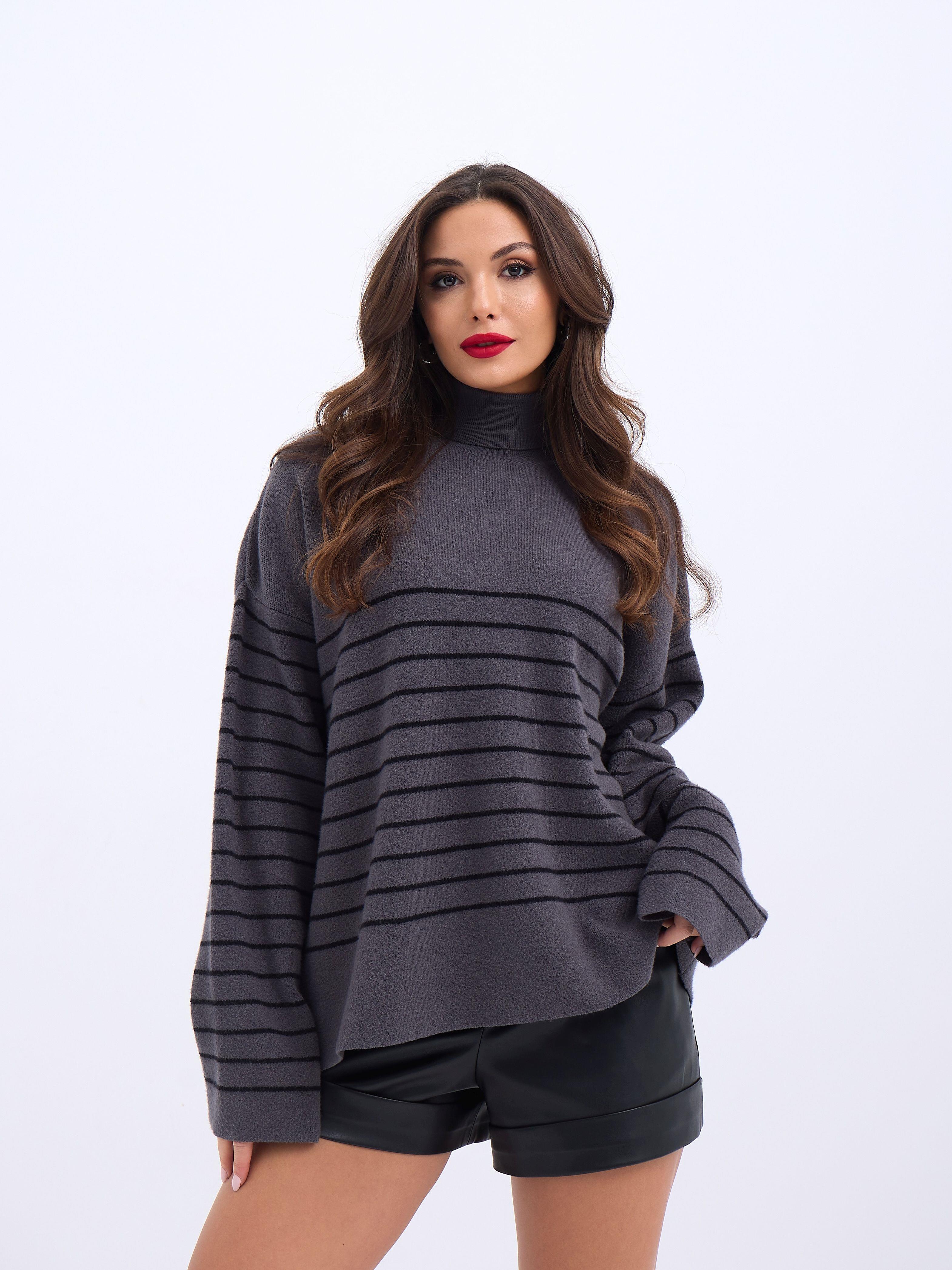 42361 STRICKWAREN ROLLKRAGEN GESTREIFT SALASH-ANTHRAZIT-SCHWARZ