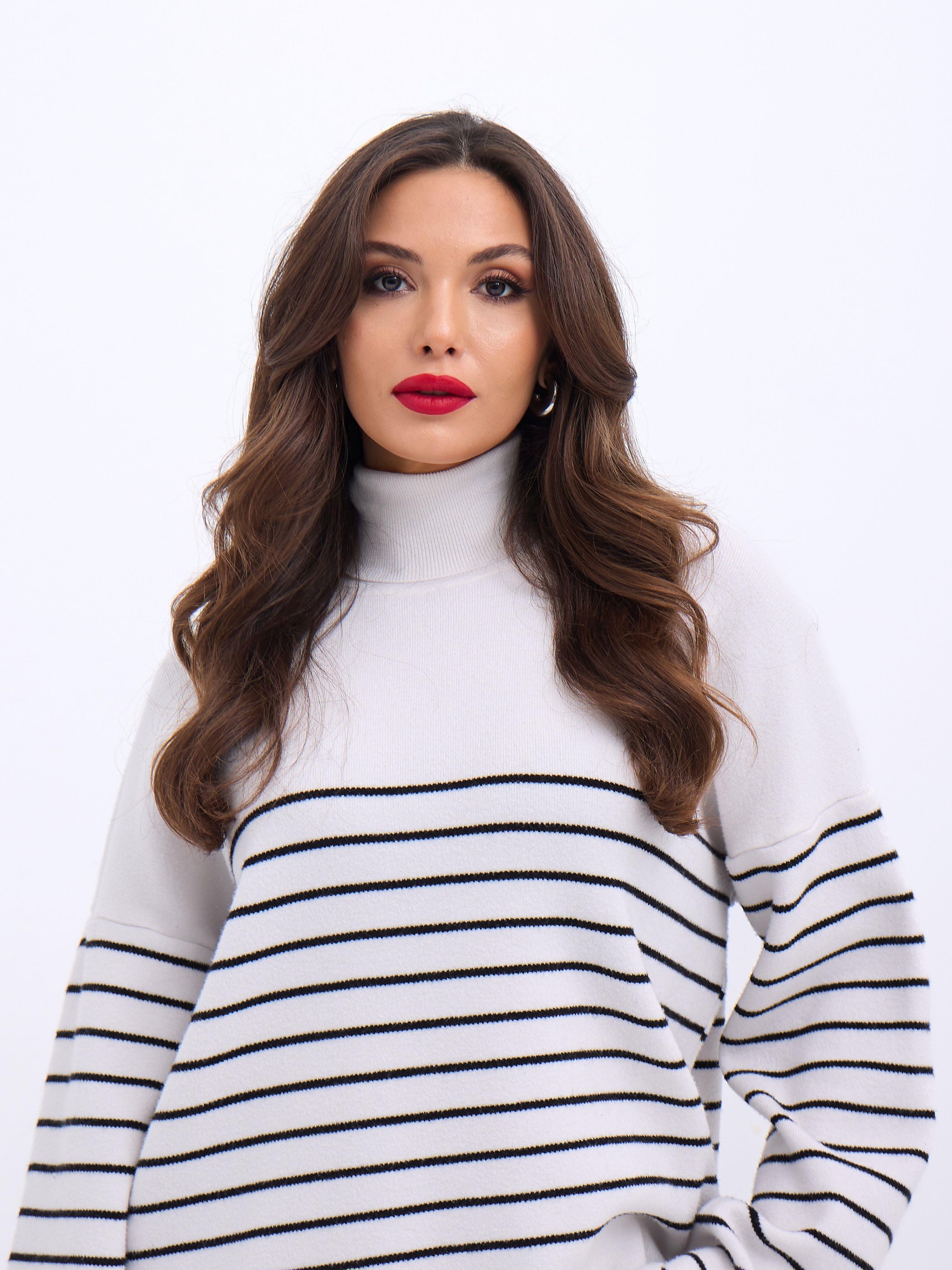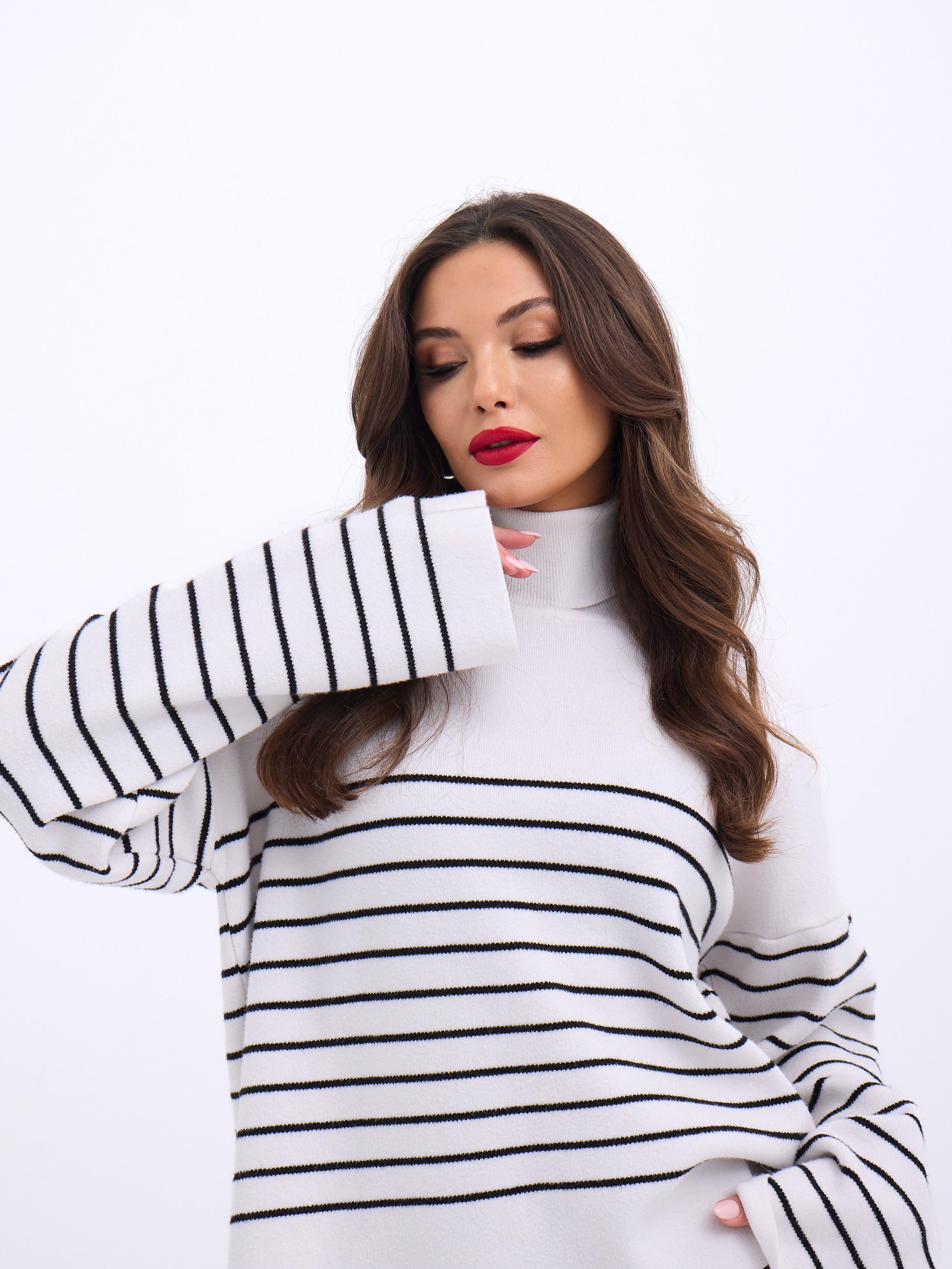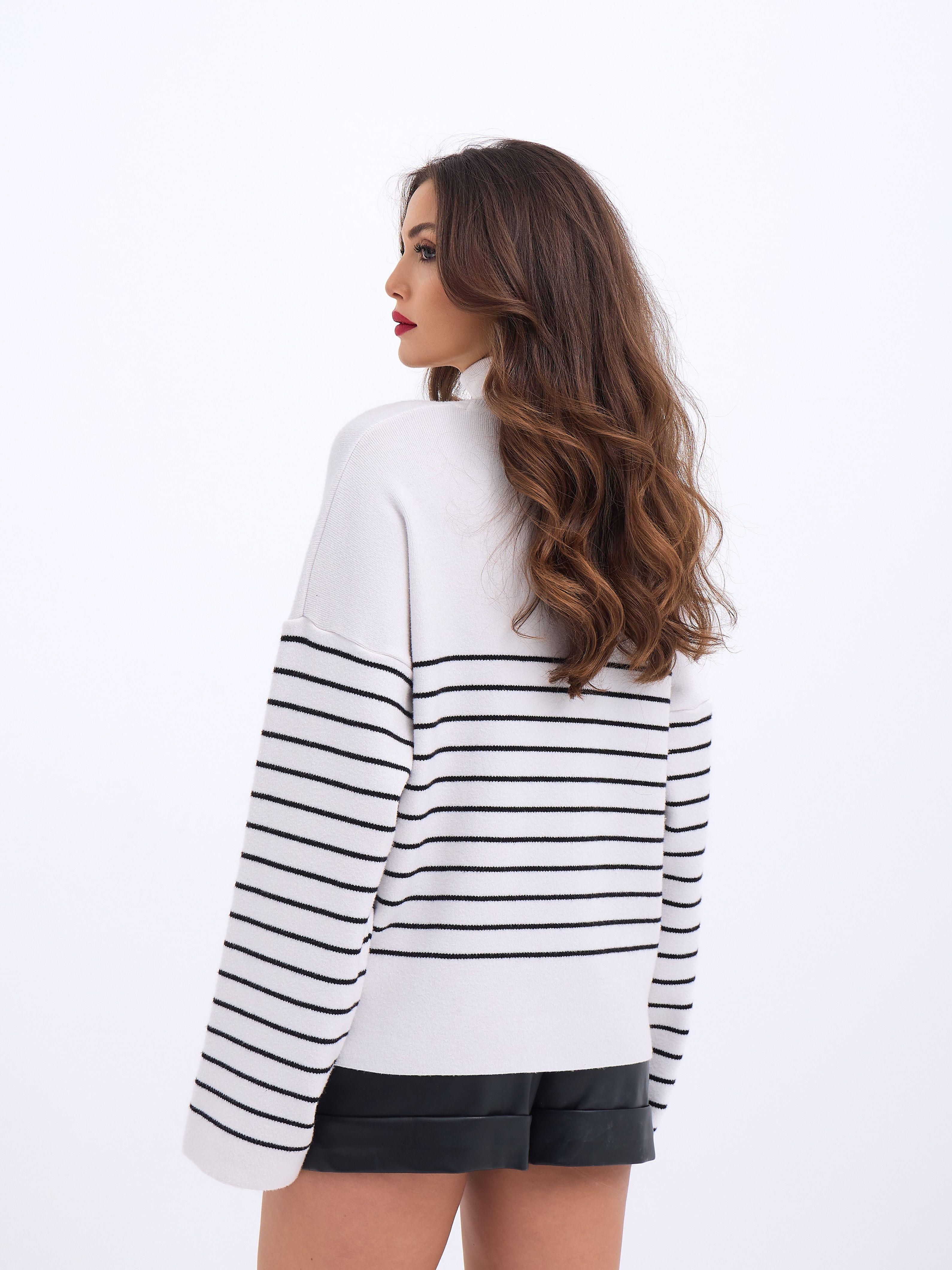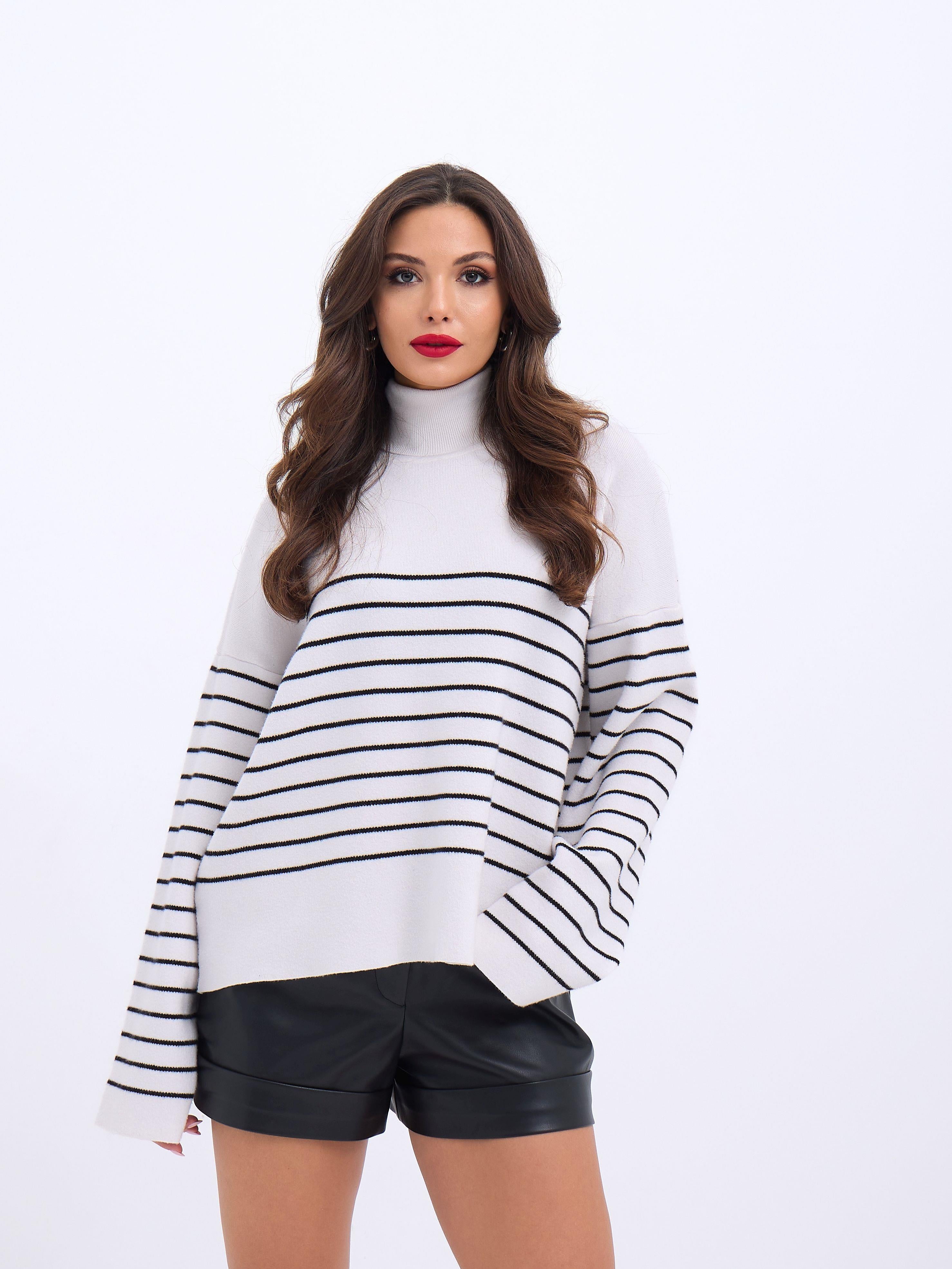 42361 STRICKWAREN ROLLKRAGEN GESTREIFT SALASH-ECRU-SCHWARZ