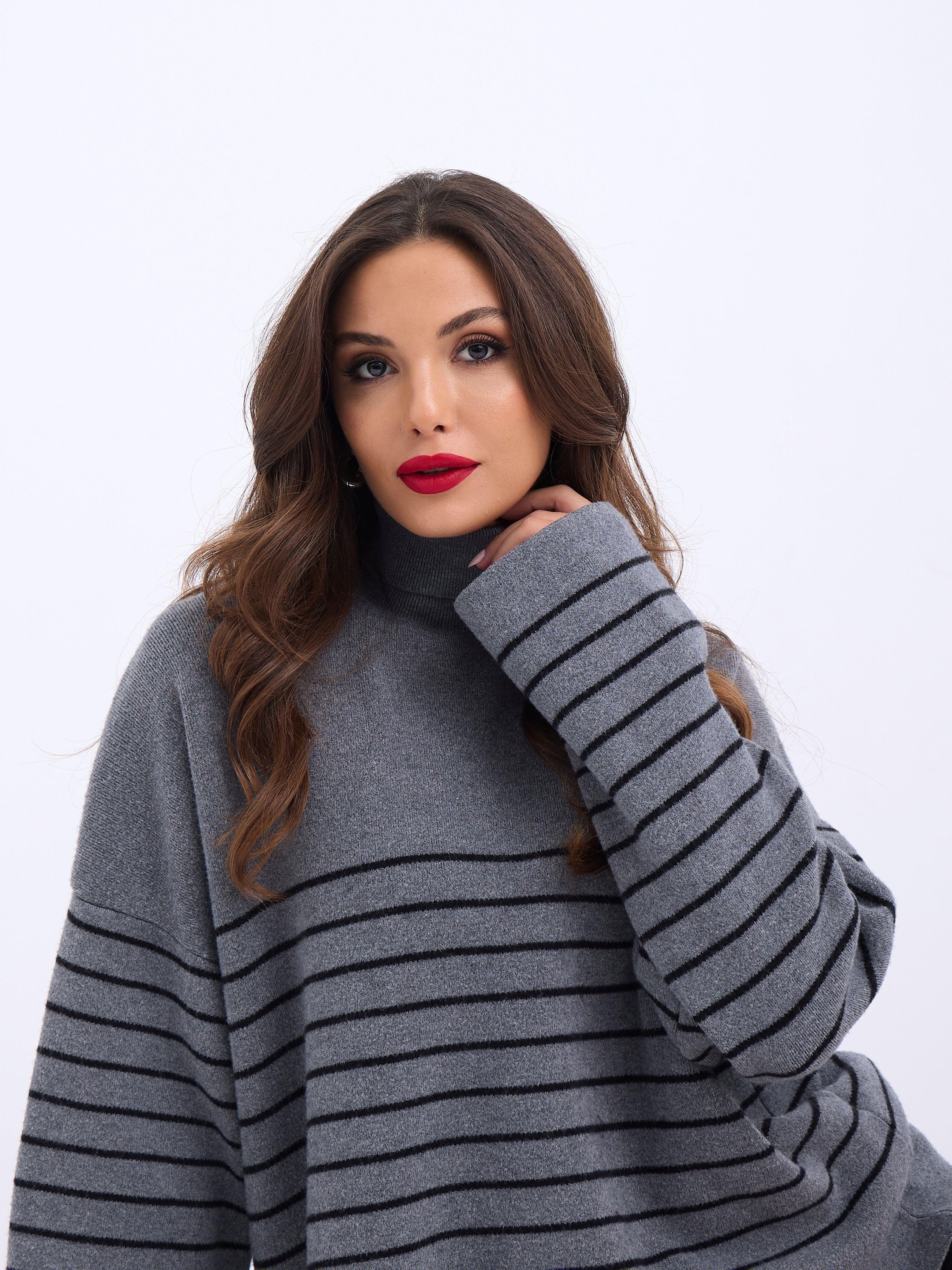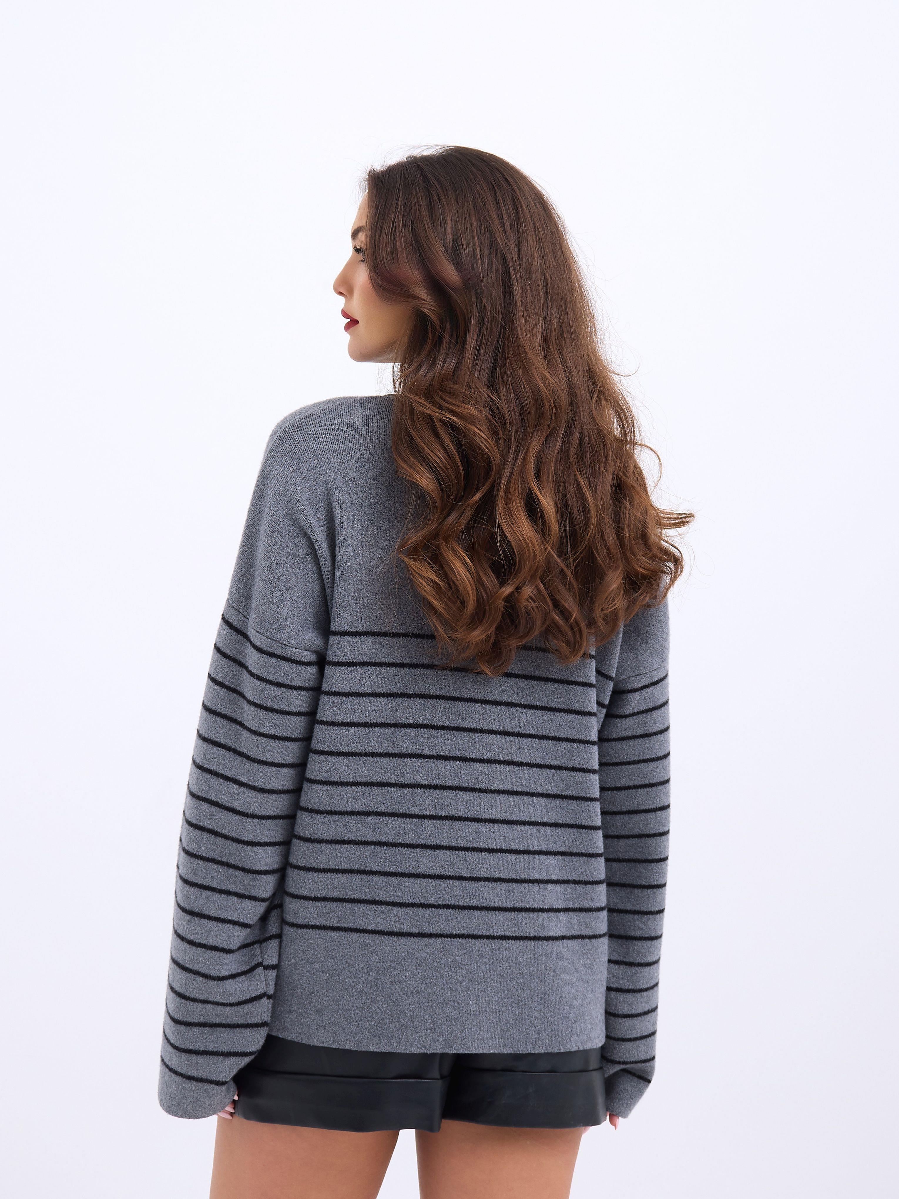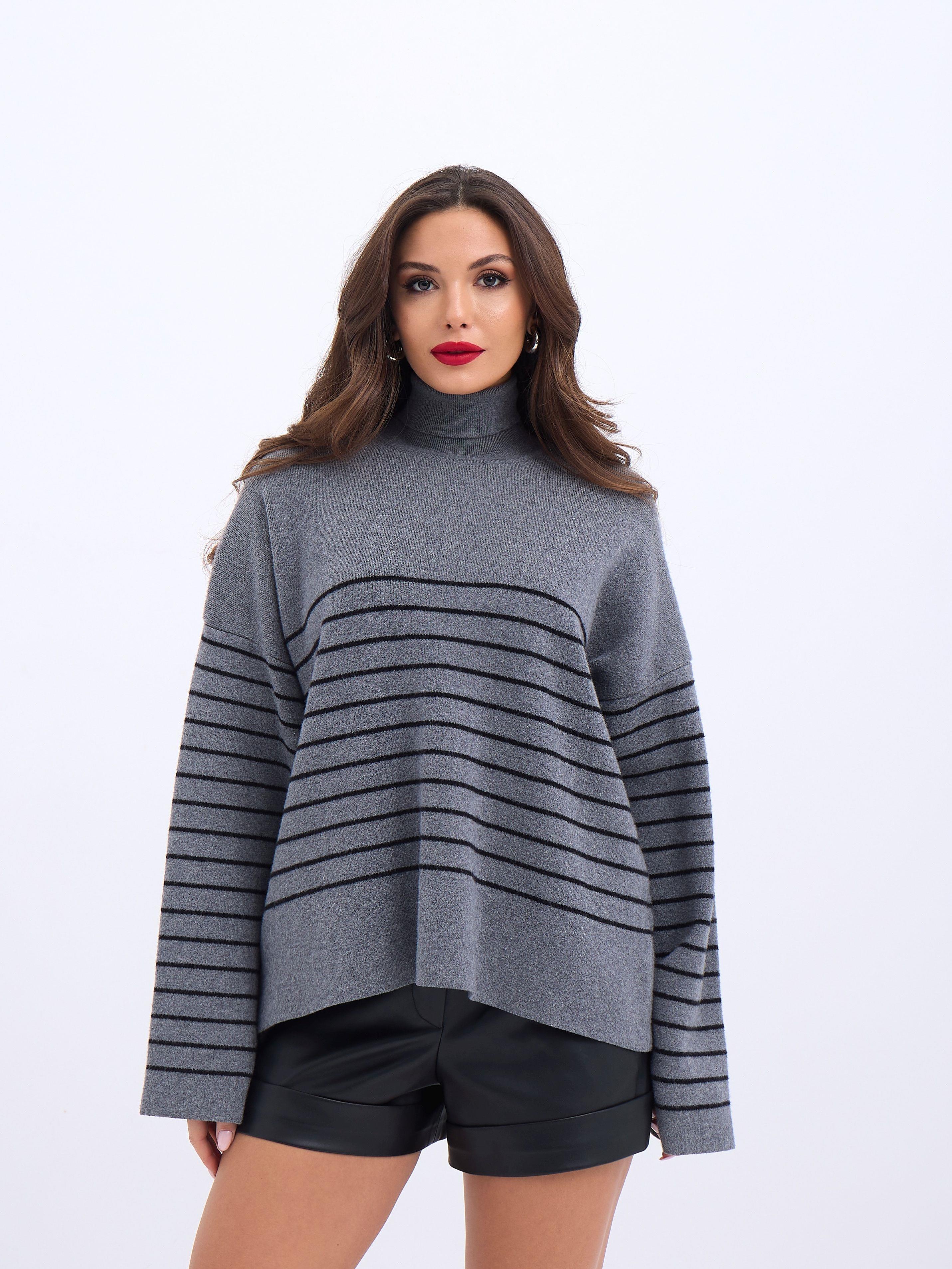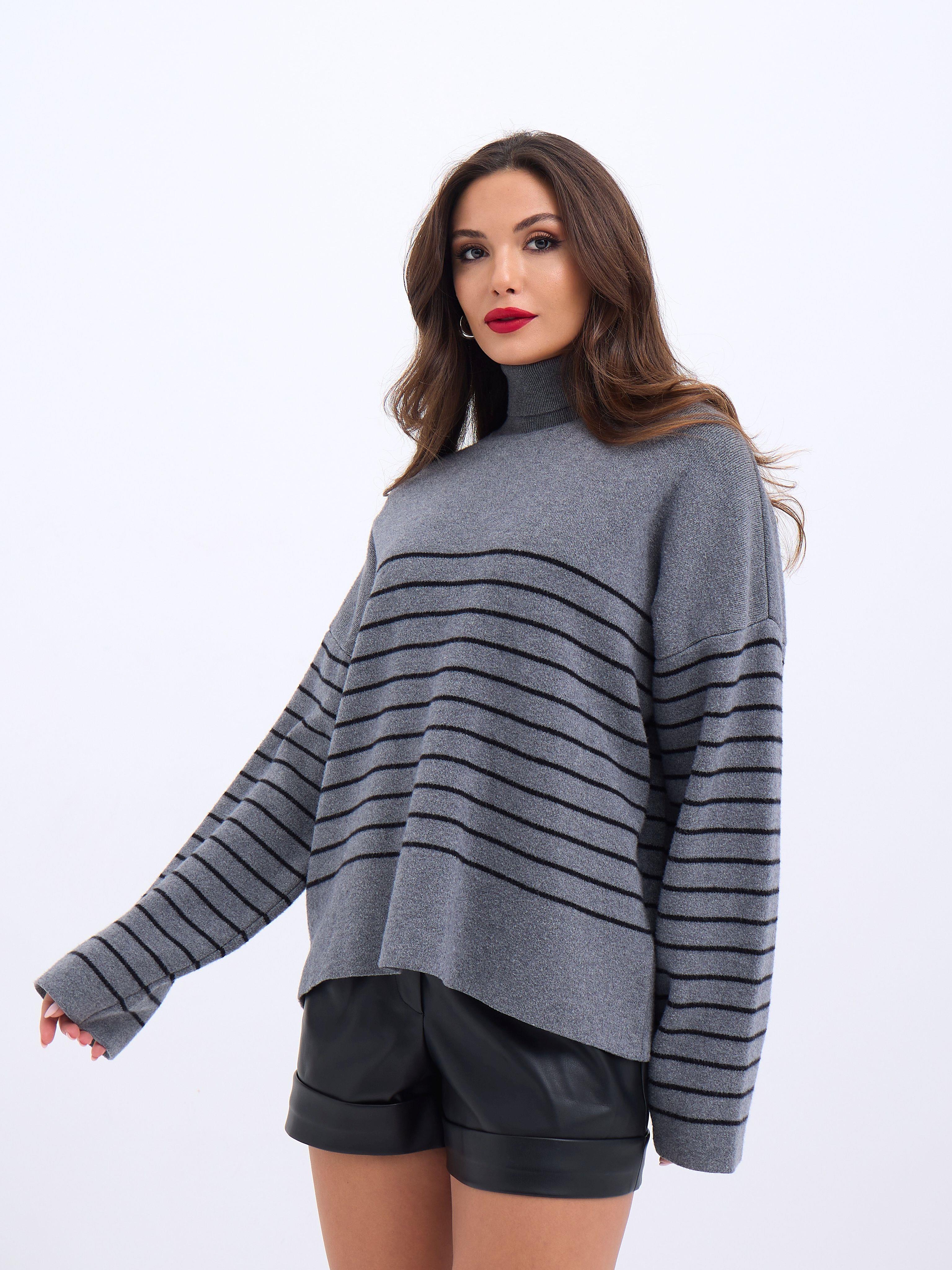 42361 STRICKWAREN ROLLKRAGEN GESTREIFT SALASH-GRAU-SCHWARZ