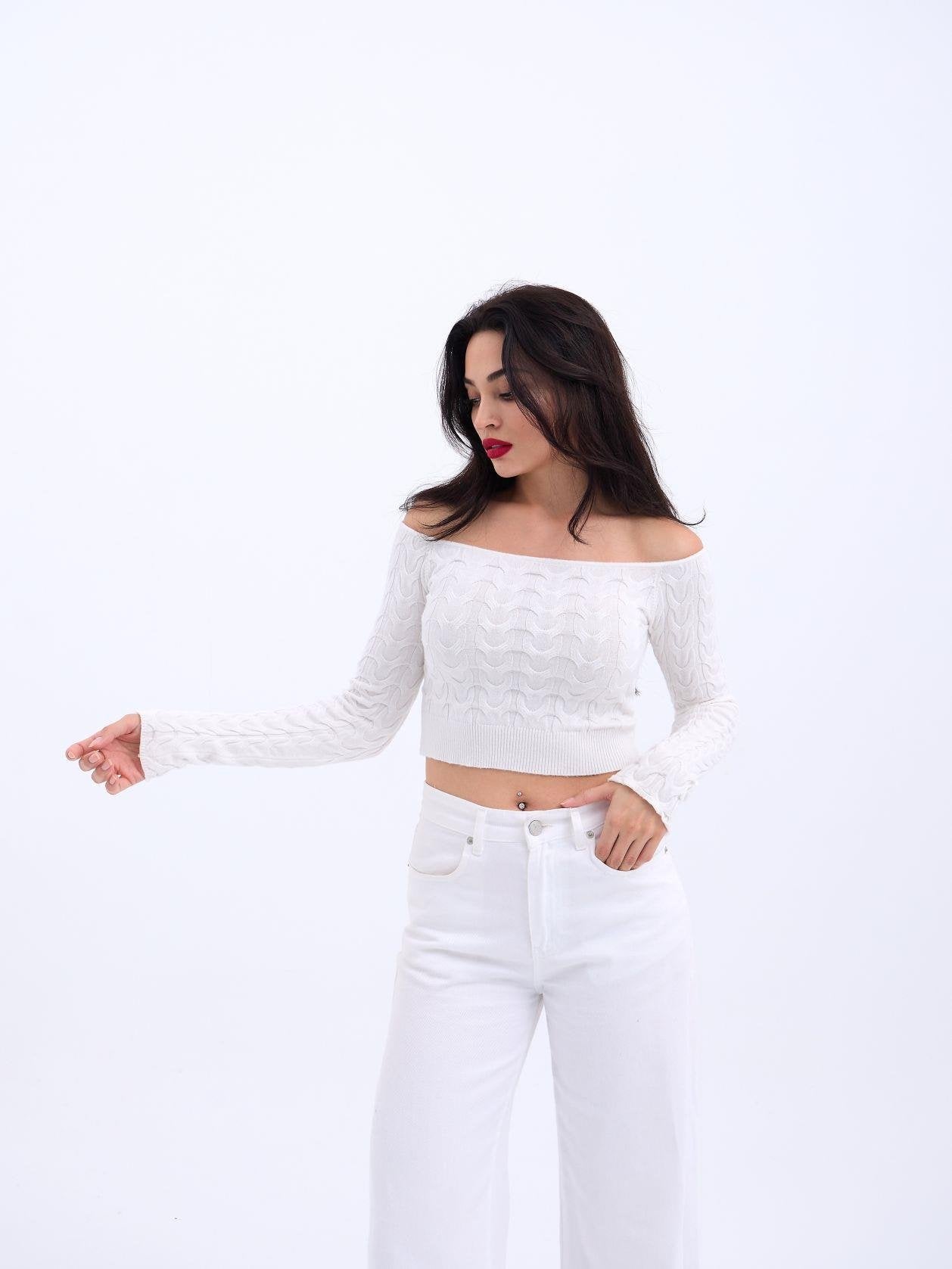 42241 STRICKWAREN FLEDERMAUS-KRAGEN-CROP-ECRU