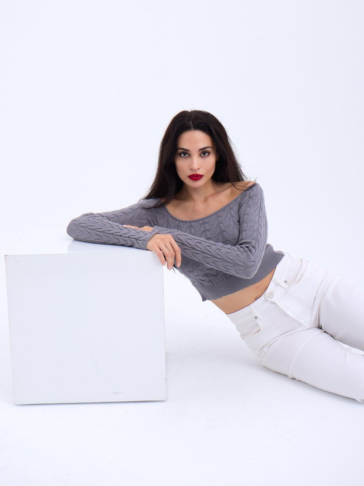 42241 STRICKWAREN FLEDERMAUS-KRAGEN-CROP-GRAU