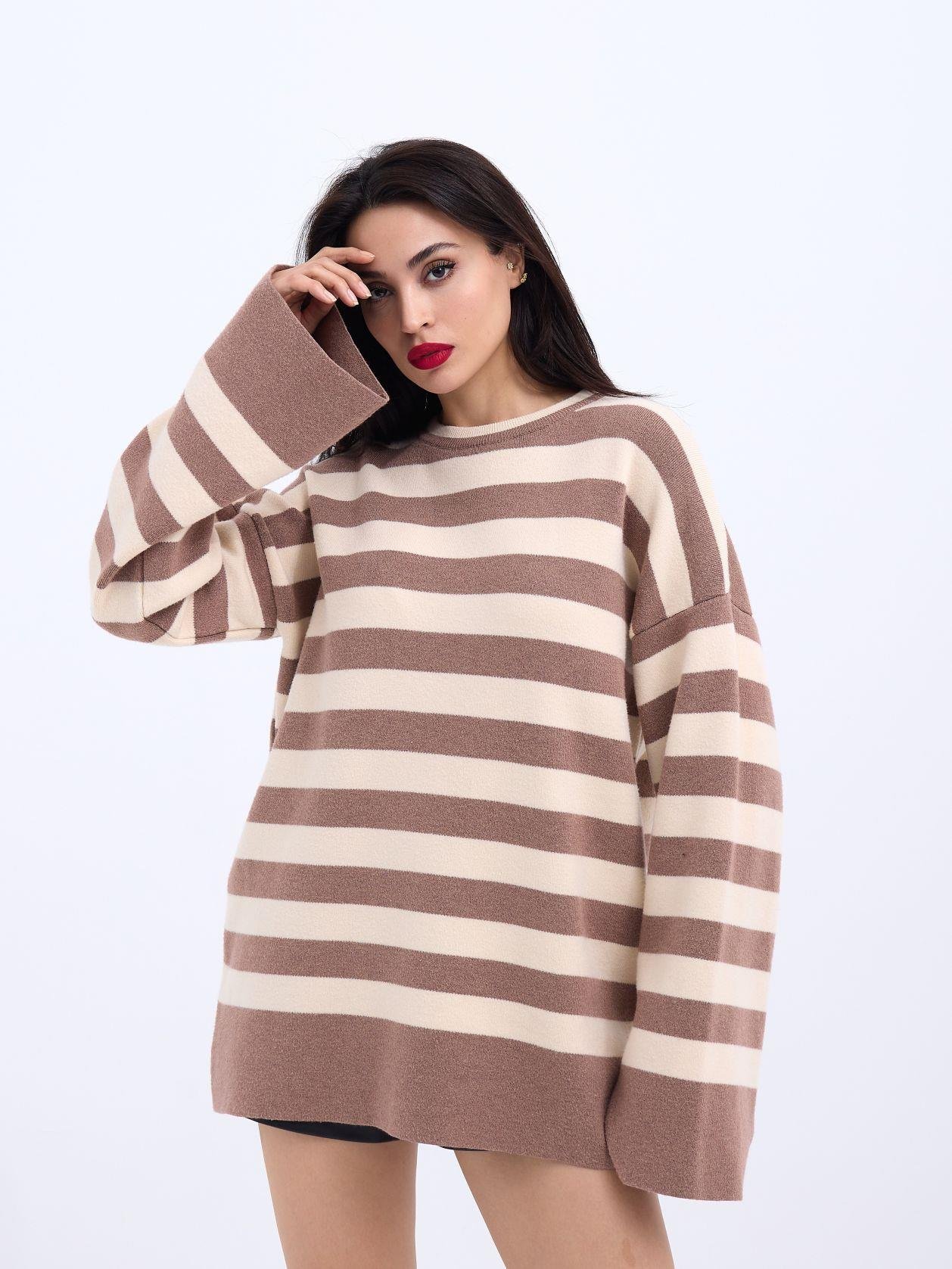 42291 STRICKWAREN GESTREIFTES LOCKERES PULLOVER-NERZ-CREME