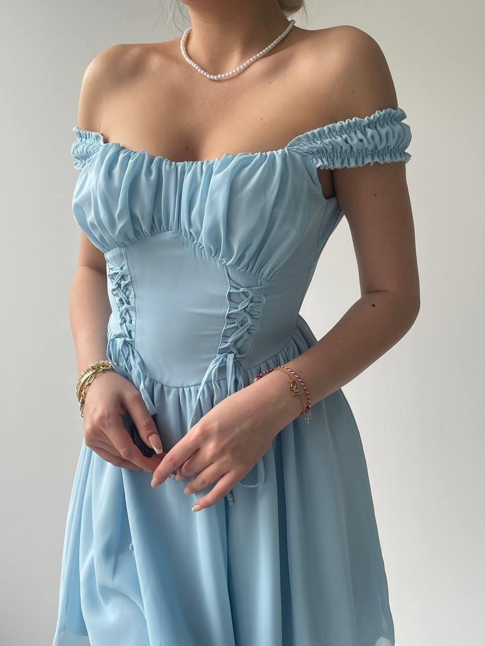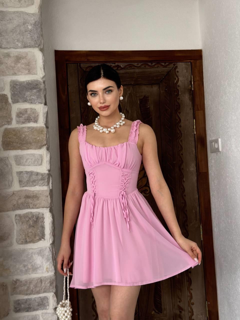 Aria Büzgü Askılı Elbise