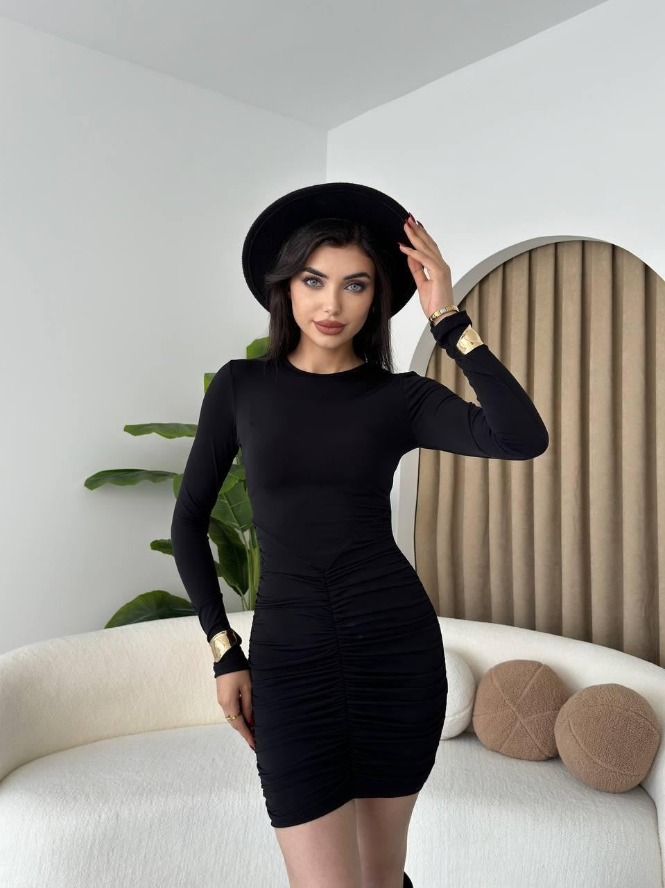 Manca Büzgülü Mini Elbise